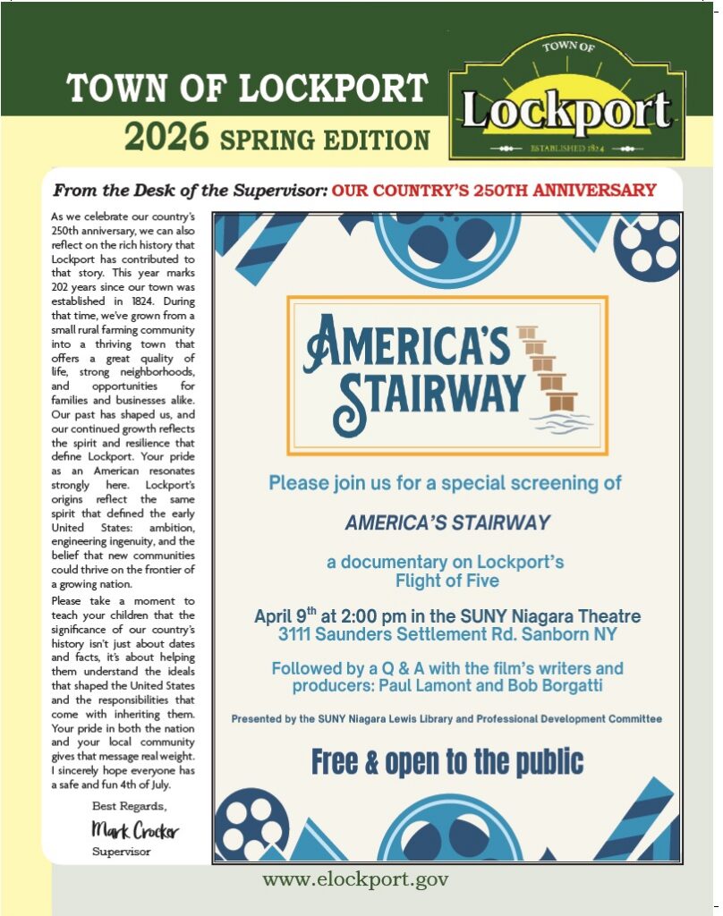 Established in 1824, The Town of Lockport is located in the south-center of Niagara County, in Western New York. The Town of Lockport surrounds the City of Lockport. With a population of 20,027 and 45 square miles, the Town encompasses the Niagara Escarpment, the Historic Erie Canal, rural farm land and the vibrant Transit North retail corridor. Its population and residential property growth have continued a pattern of steady increase over the past few decades. Lockport is a town which has planned and channeled its growth wisely.